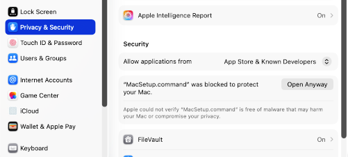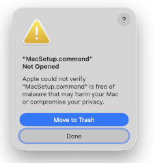 If double-clicking does not work, you may need to run the MacSetup.command from a terminal window,